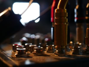 - de controlekamer waar de muziek wordt opgenomen en bewerkt)
