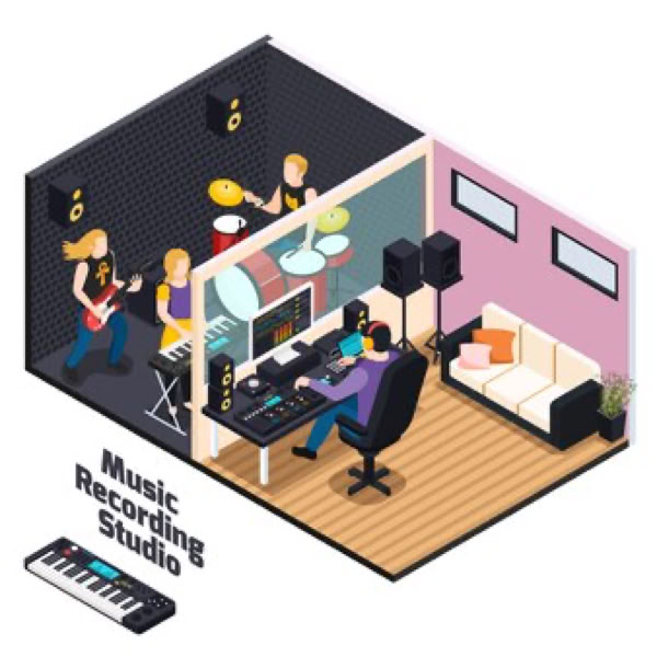 - de studio zelf (waar de muziek wordt gespeeld)